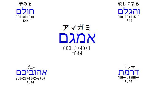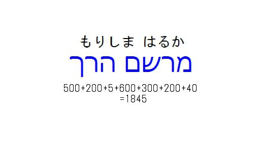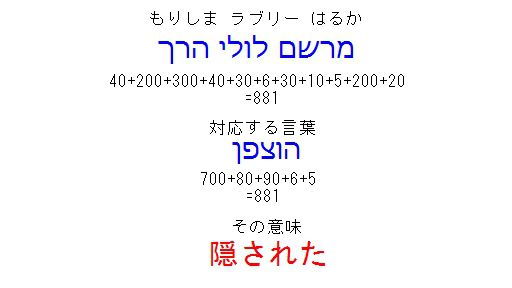 夢というのは預言ですよね。預言を現わにする恋人のドラマ。それが、アマガミという言葉の秘められた意味です。して、どんな預言を現わにするのでしょうか。その事を知るために、森島はるかの名を、ヘブライ語で書いてみましょう。