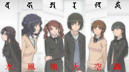 つまり、アマガミSSには六人のヒロインがいます。で、その一人が水のアマガミでした。一人だけ人間じゃない、ってのはないよね。とすると、他のヒロインも風や火など、他の元素のアマガミであるはずだ。六つの元素言うたら六大です。
